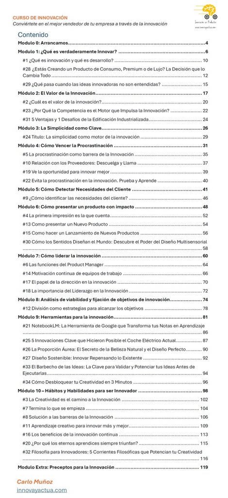 Y para los que quieren ir un paso por delante o ir más rápido, he creado una Formación de Innovación.
